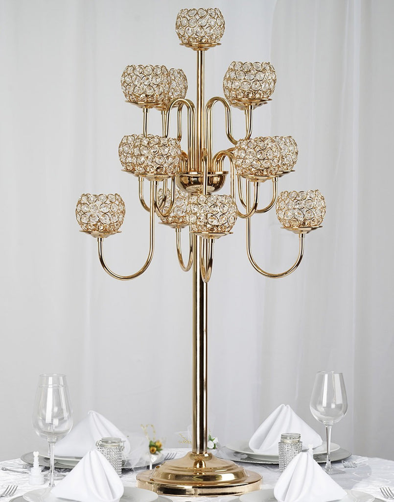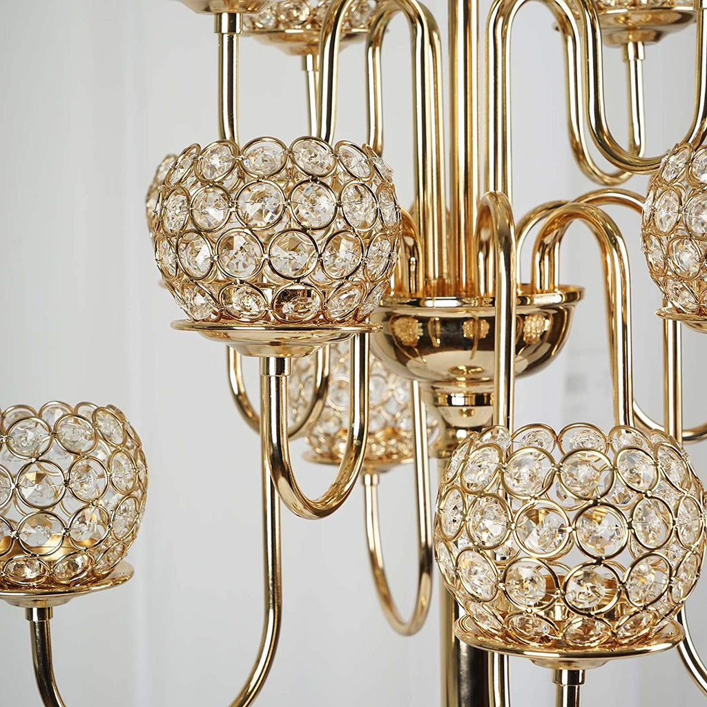 eFavormart 39.5" Gold Crystal Beaded 13 Arm Candelabra Chandelier Votive Candle Holder Wedding Centerpiece