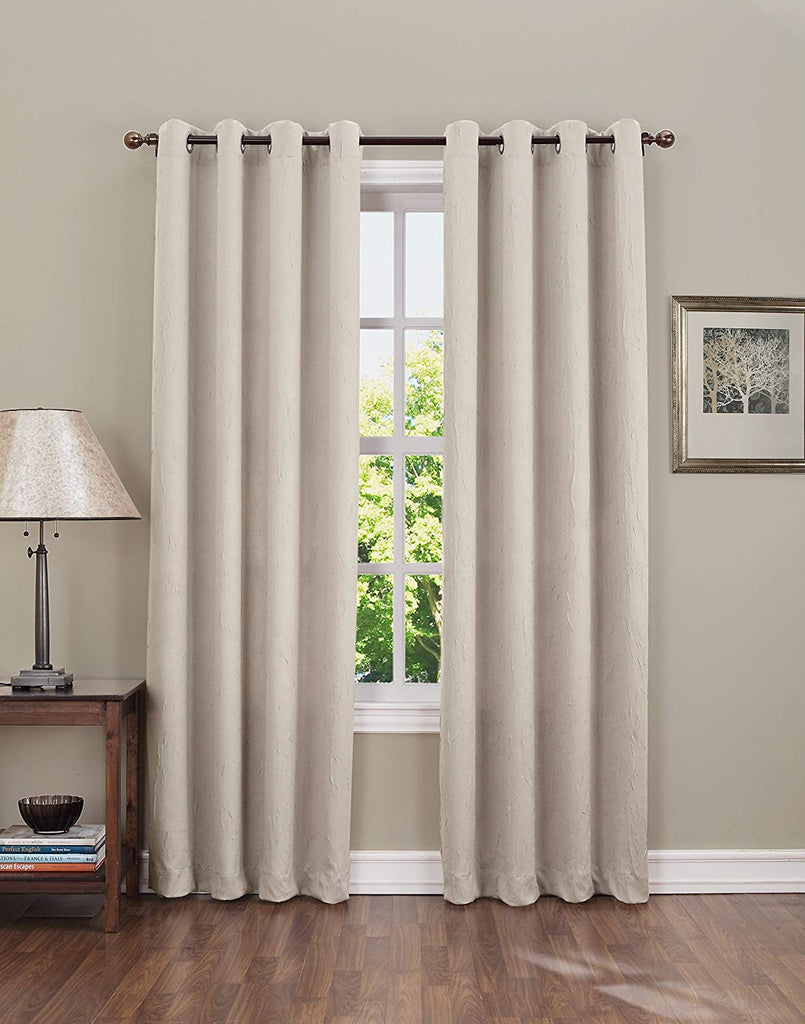Sun Zero Leighton Crushed Room Darkening Grommet Curtain Panel,Stone Beige,50" x